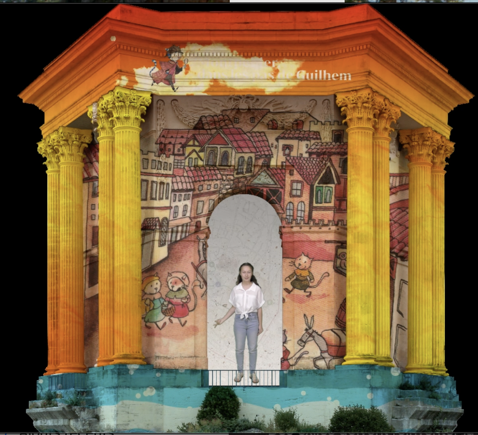 En première partie , mapping sur l’histoire de Montpellier à hauteur d’enfant : Dans les pas de Guilhem raconté par Ambre Veyrier d’après le livret du même nom aux éditions la Fenêtre.