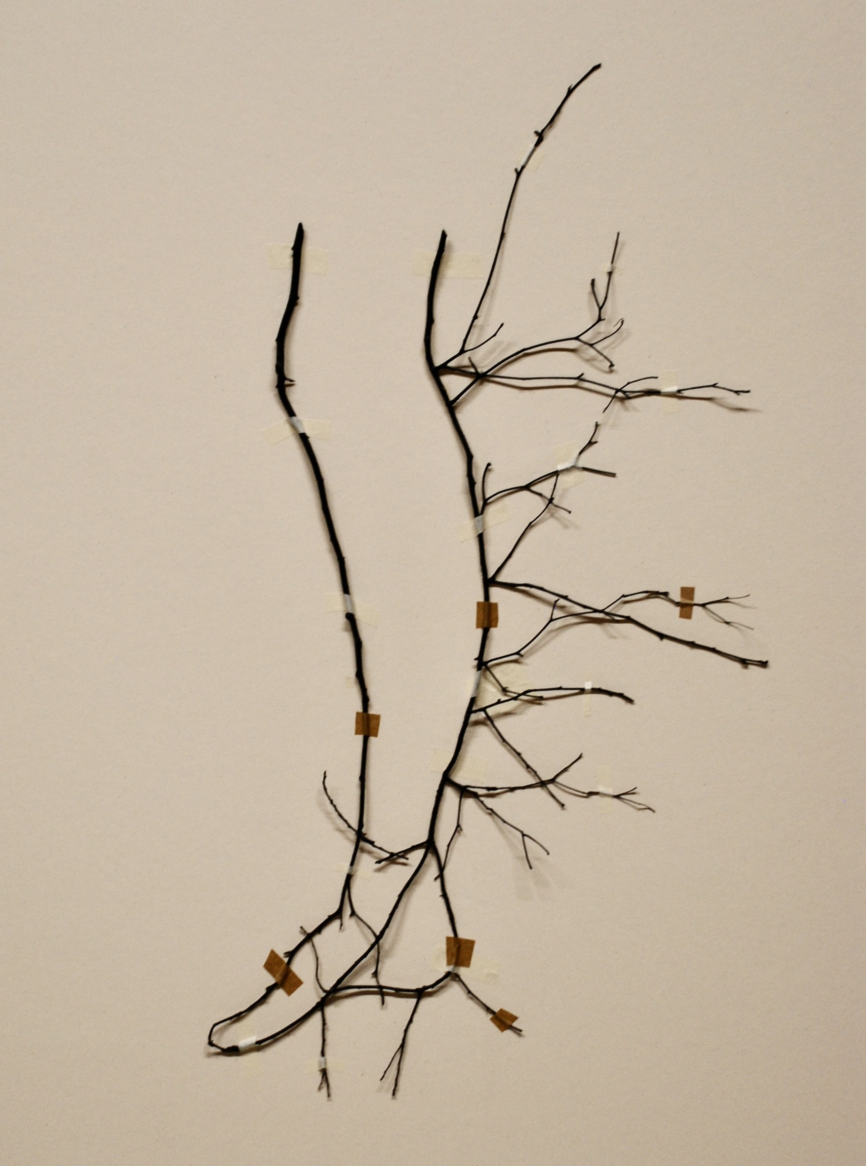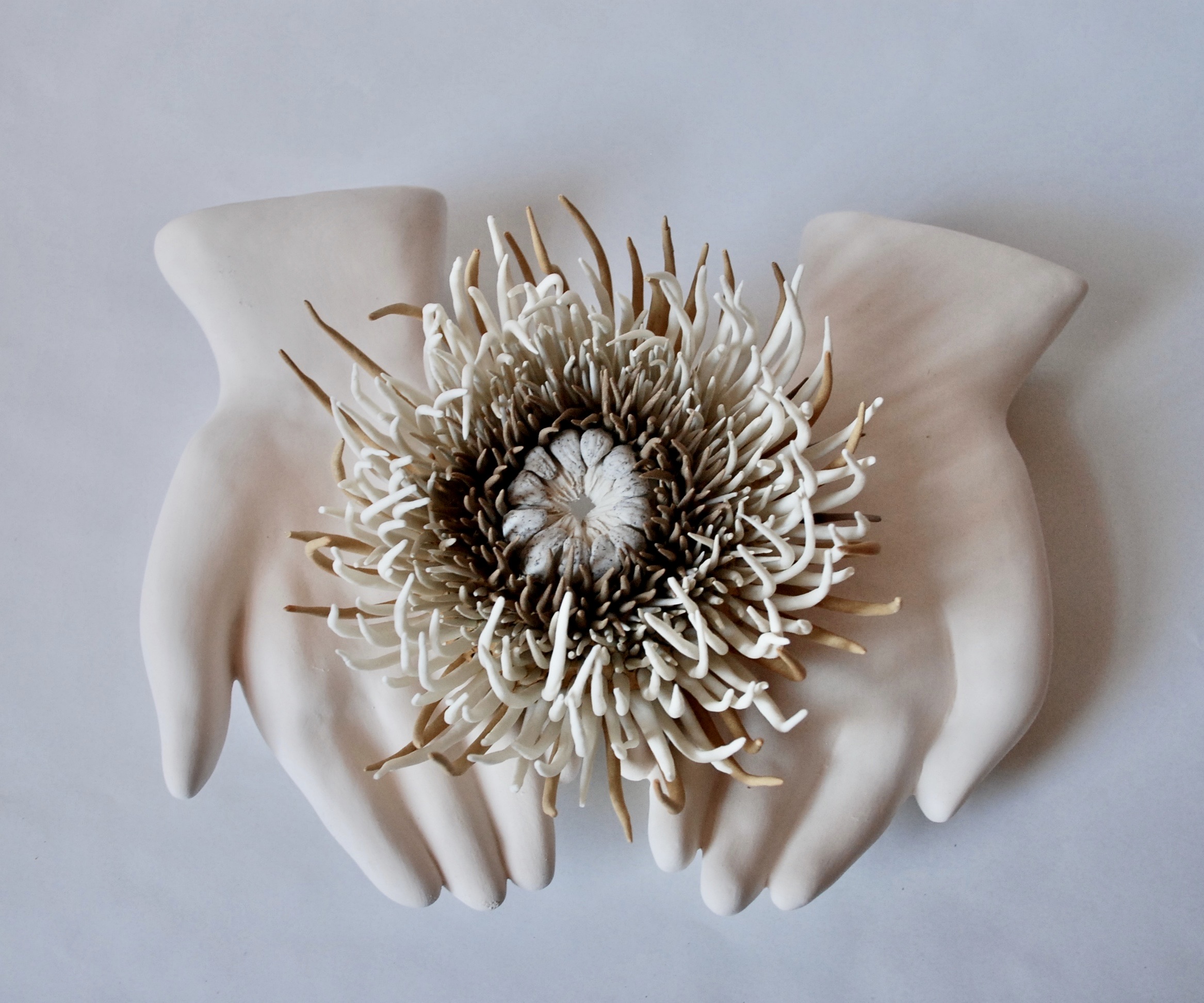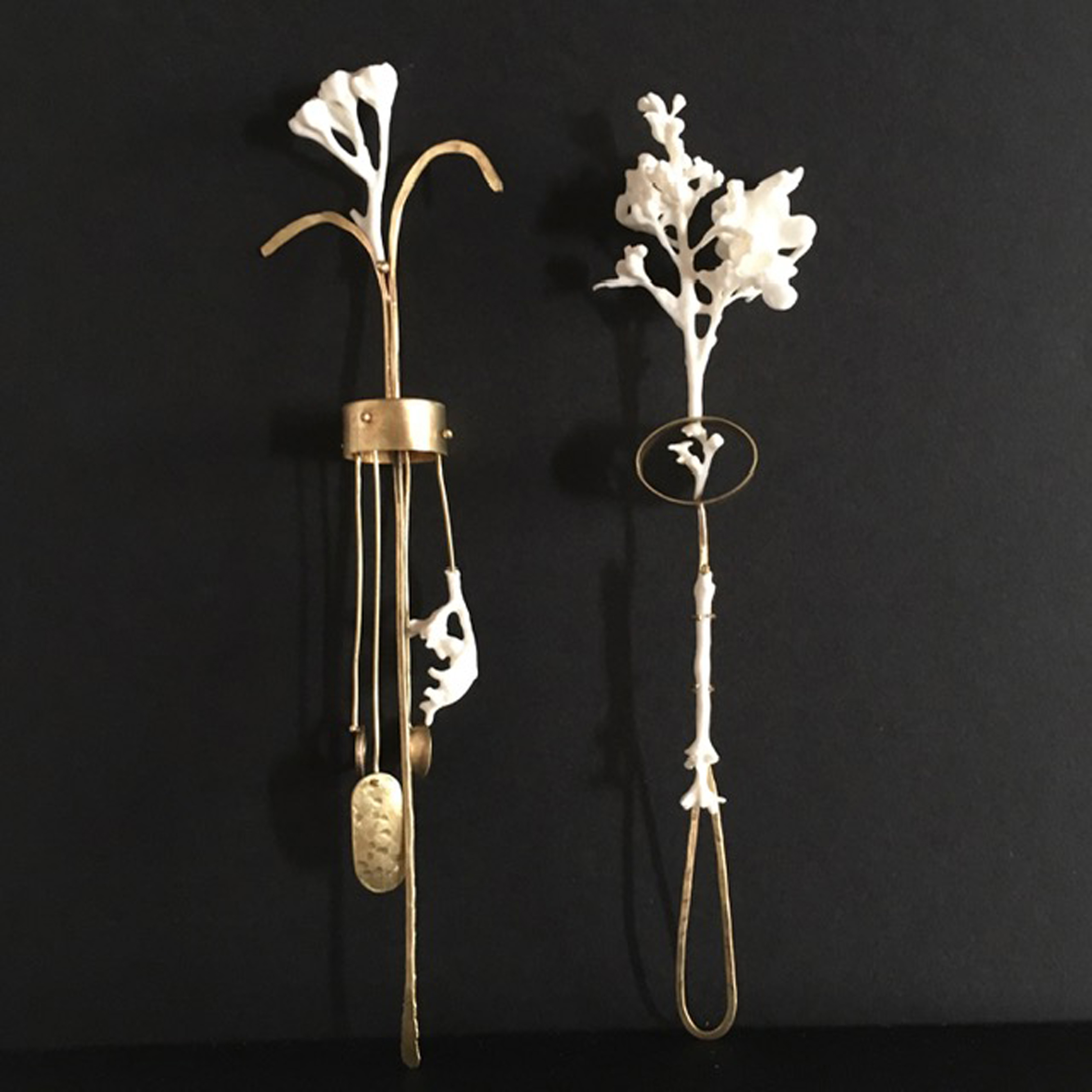 Son travail sculptural puise dans des matériaux issus de la nature, tels que végétaux et minéraux et révèle les liens qui unissent le monde minéral, issu de la terre, le monde du vivant, de l’organique, animal et végétal et les figures du ciel ( constellations).