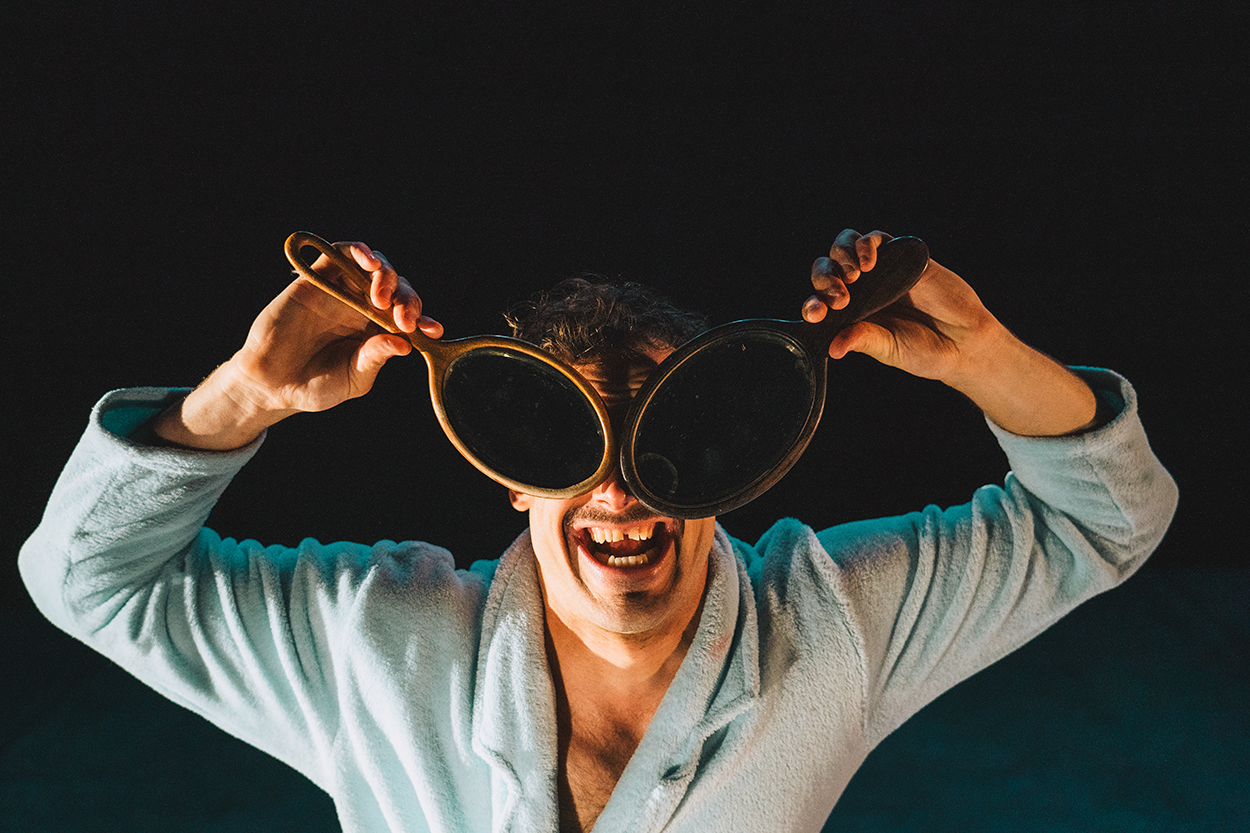 Dans sa solitude peuplée par des films de science-fiction, il va pouvoir réaliser ses rêves d’enfant, enfin libéré des regards indiscrets enfermé dans sa salle de bain. Mais l’accident n’est jamais loin car voyager entre des astres c’est risquer un véritable désastre (surtout quand on manque de place). Vademecum c’est un solo sidérant et sidéral, un numéro de cirque d’appartement spectaculaire avec des objets d’hygiène corporel. C’est aussi le goût du décalage où le jeu d’acteur n’est jamais loin du jeu d’enfant, une explosion de créativité dans le détournement des objets du quotidien.