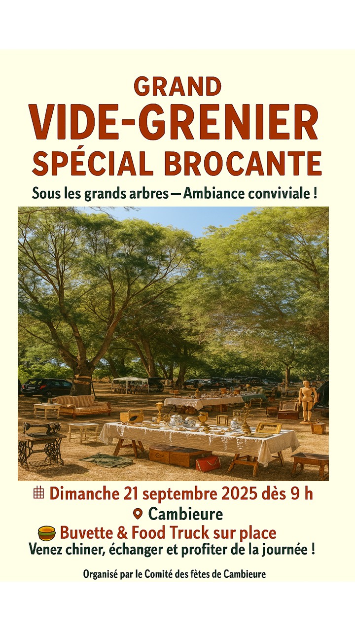 Infos pratiques : Inscription obligatoire avant le 14 septembre 2025 Brocante uniquement.