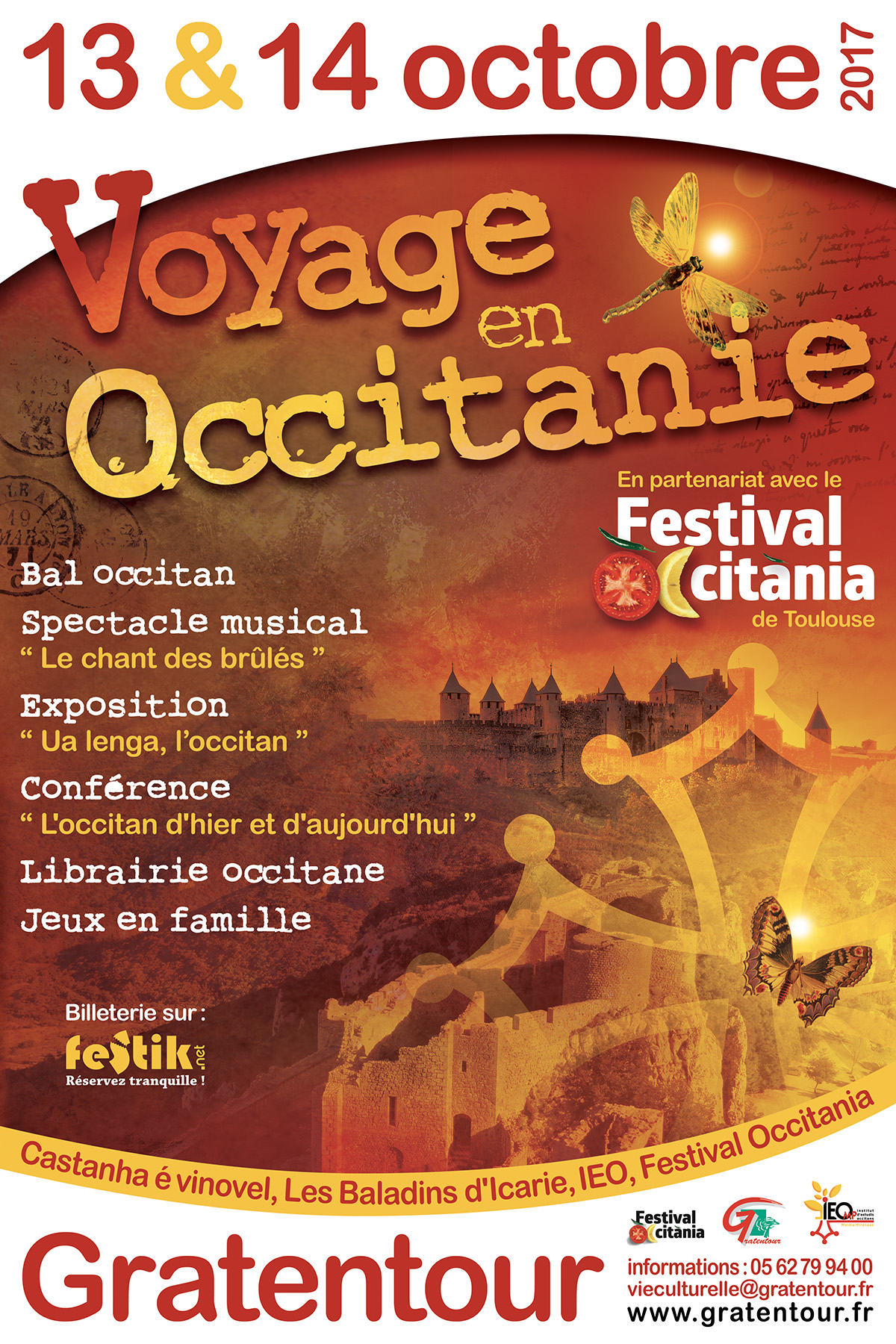 A l’issue d’un partenariat avec le « Festival OCCITANIA » de Toulouse, les lieux culturels de la commune de GRATENTOUR résonneront de la culture occitane sur le mois d’octobre avec un moment clé les 13 et 14 octobre !