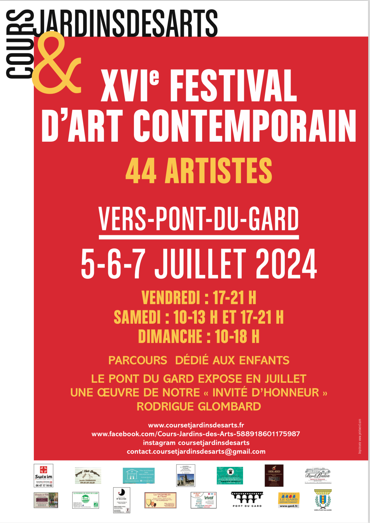 « Cours & Jardins des Arts » (association loi 1901) organise les 5, 6 et 7 juillet son XVI° Festival d’Art Contemporain dans les cours et jardins du beau village de Vers-Pont-du-Gard.