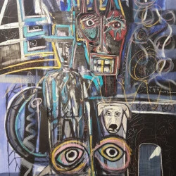 El Chuzpo, de son vrai nom Christophe Ducoin, est un artiste peintre basé à Toulouse de style néo-expressionniste. Son travail explore des thèmes sociaux et émotionnels à travers des couleurs audacieuses et des matériaux variés. Il utilise principalement l’acrylique, l’encre et l’huile, donnant naissance à des œuvres marquantes. Celles-ci intègrent souvent des figures humaines et animales stylisées, exprimant une énergie brute et une spontanéité maîtrisée. Grâce à ce style distinctif, ses peintures captent le regard et suscitent la réflexion.