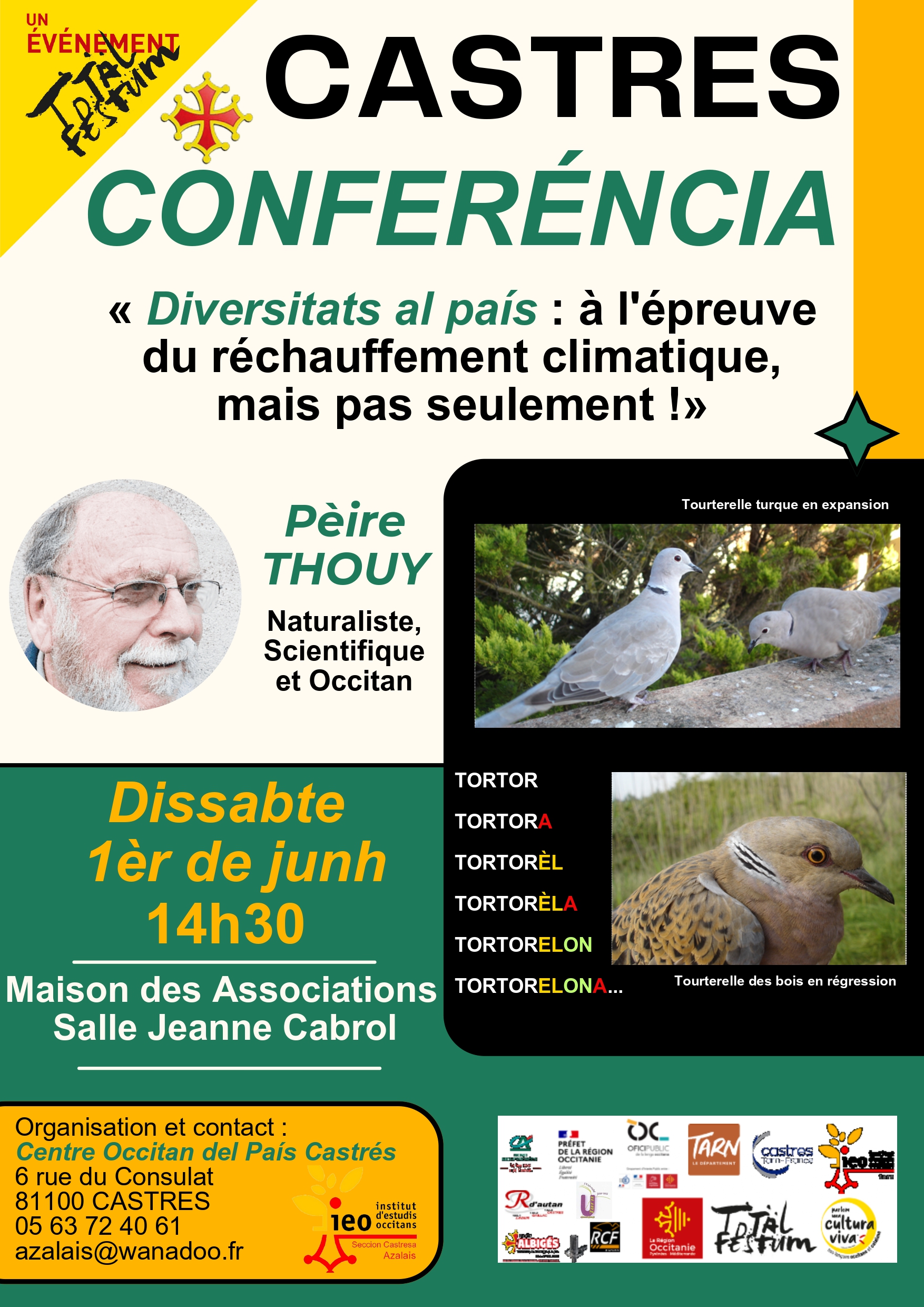 La conférence « Diversitats al país : à l’épreuve du réchauffement climatique, mais pas seulement ! » le 1 juin 2024, à 14h30, à la Maison des Associations (Place du 1er Mai – 81100 CASTRES).