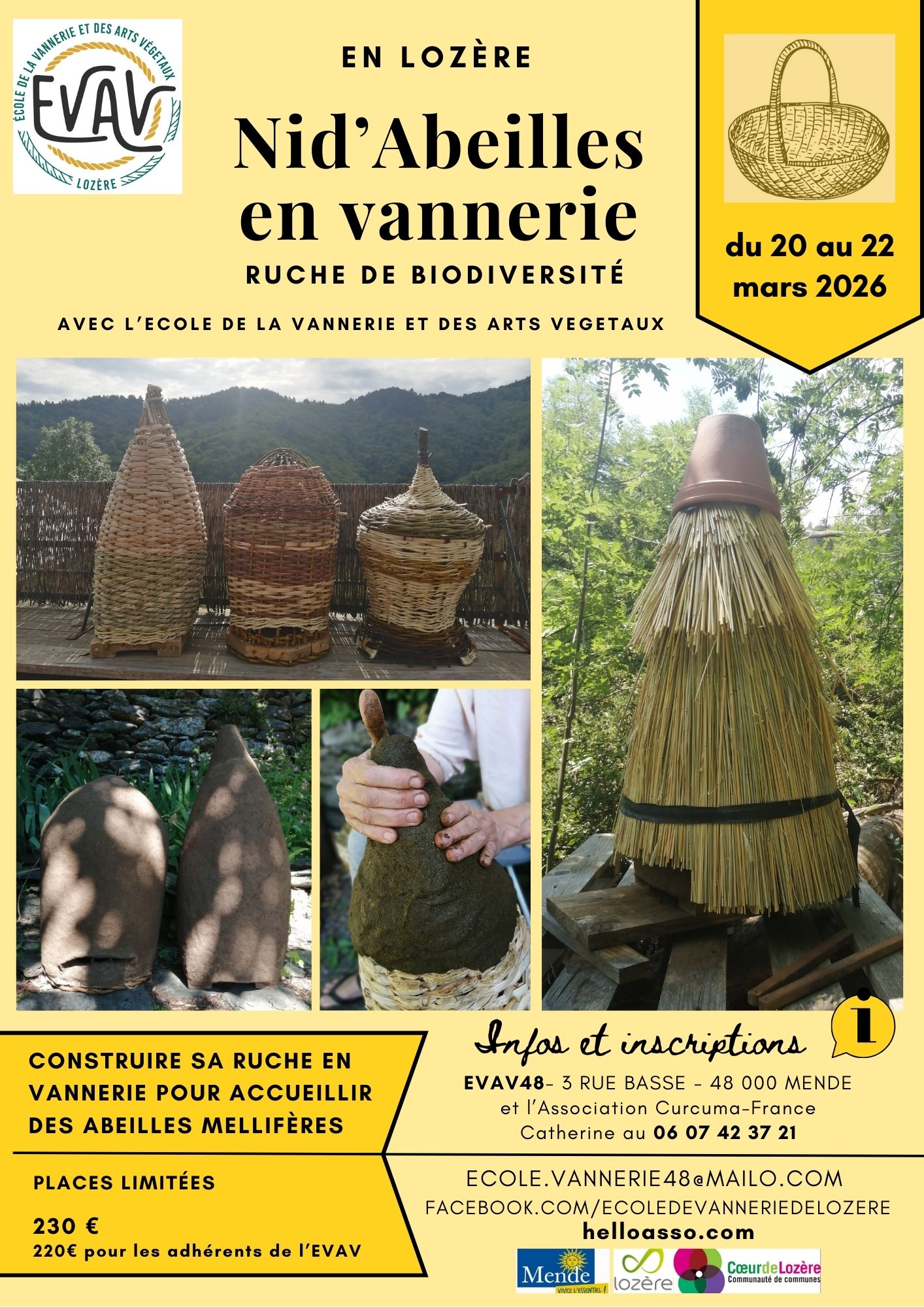 L’entrée dans le Printemps ne pouvant pas se faire sans nos amies les abeilles, Catherine et Eric. vous proposeront de leur fabriquer un véritable Nid avec différentes techniques et différents matériaux sur un stage "Nid’abeille" du 20 au 22 mars 2026. Pour plus d’info, appelez Catherine au 06 07 42 37 21